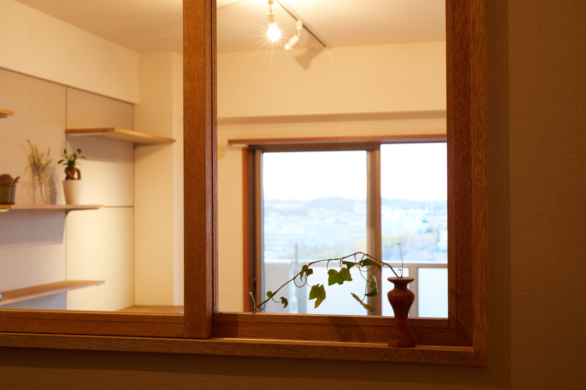 光の入りにくい奥の部屋には室内窓を取り付けて明るさを。