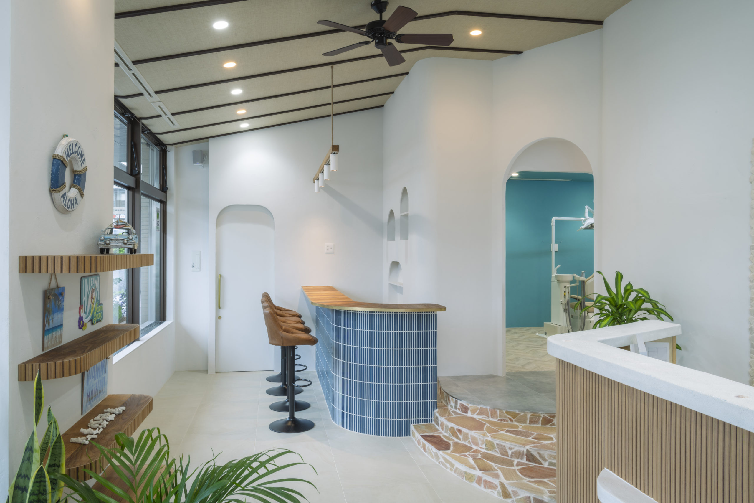 ハワイが好きなオーナーの想いから生まれた、一般的な「白い歯科医院」とは異なるアプローチの歯科医院。カラフルな色彩やモチーフを随所に散りばめ、訪れる人が少し肩の力を抜いて過ごし、ハワイの空気感を感じられる空間を目指した。