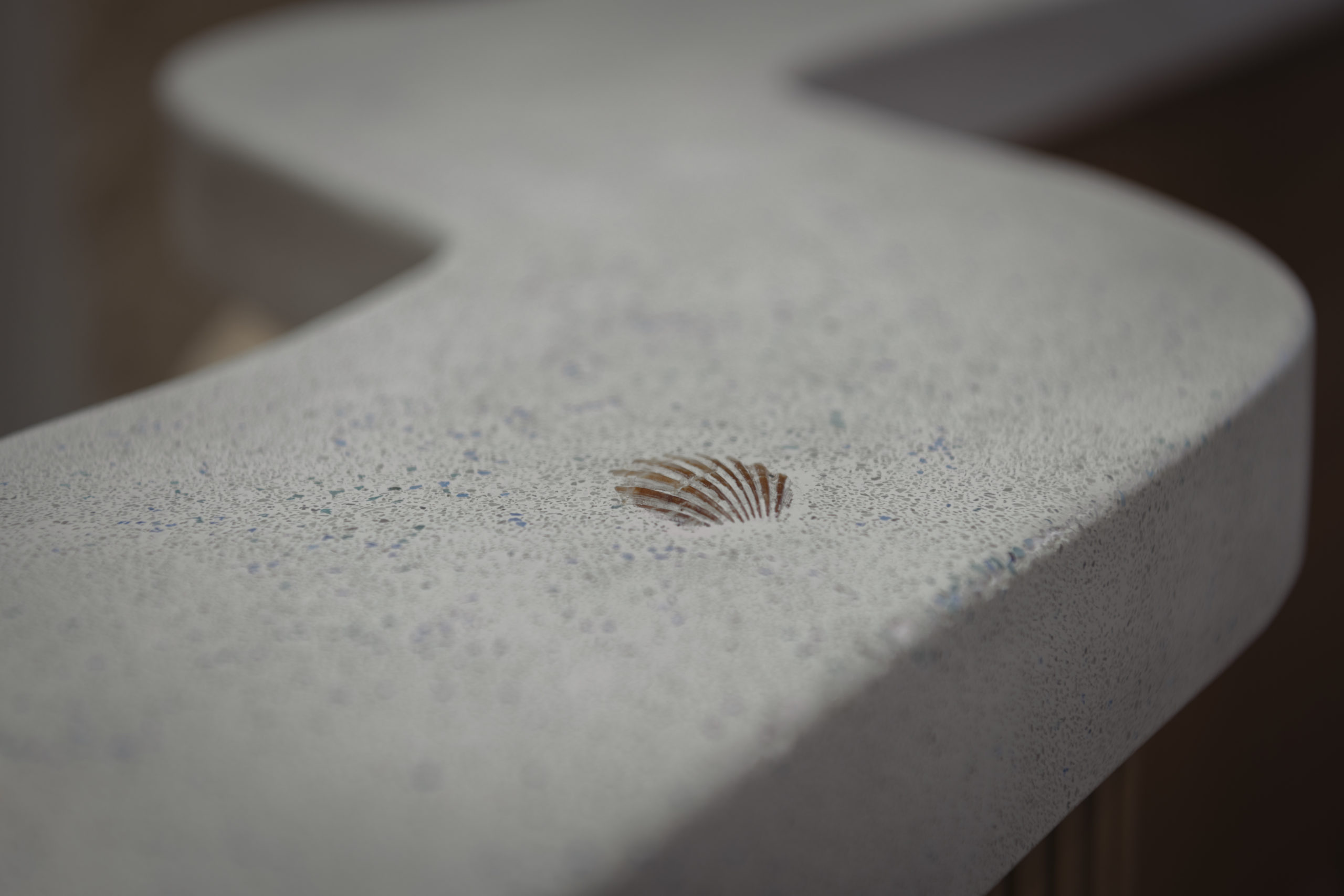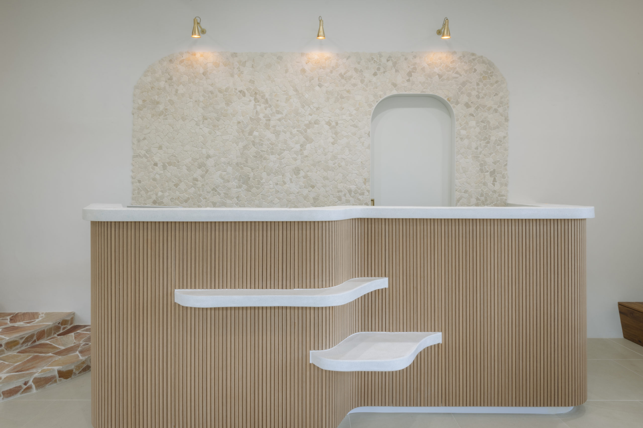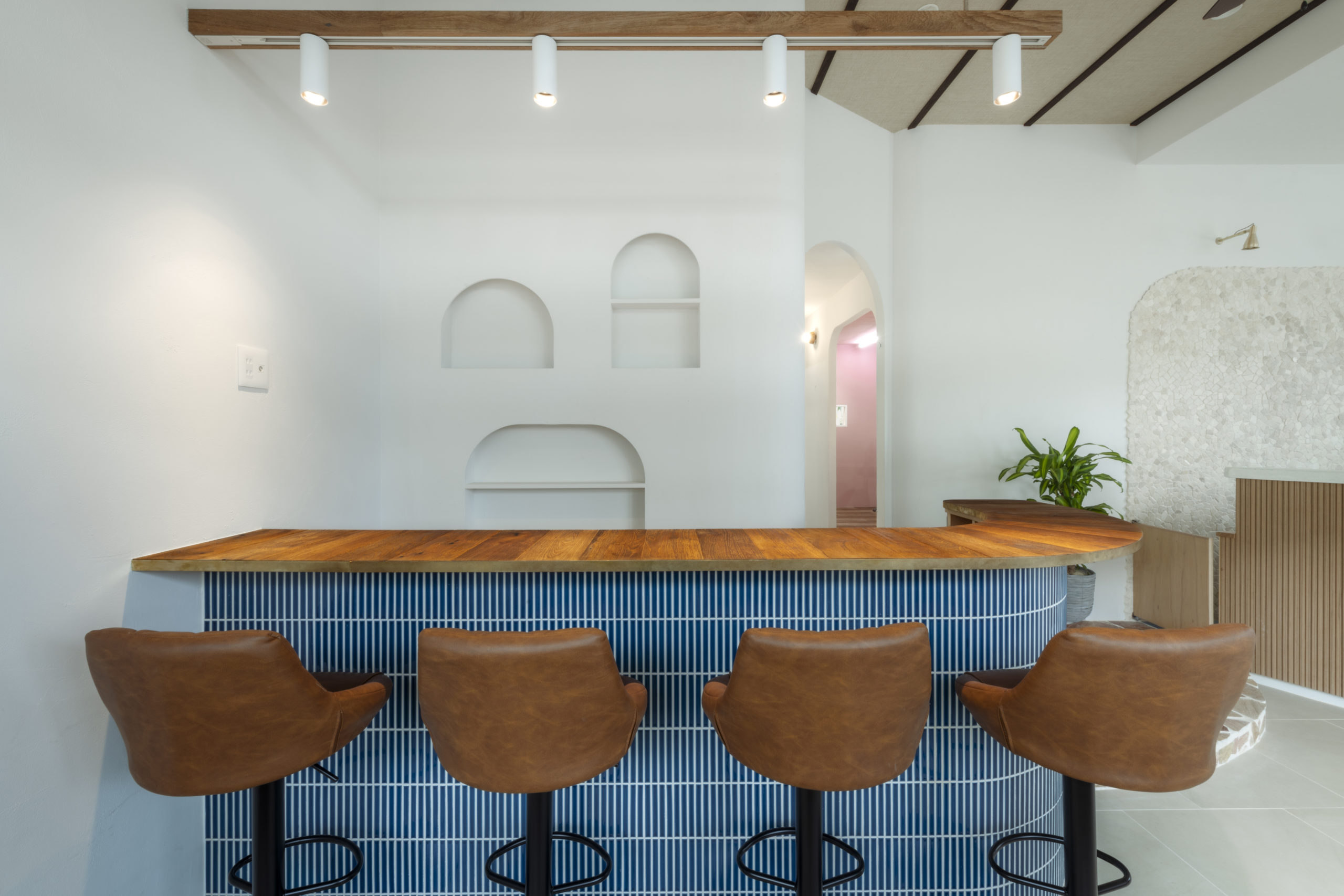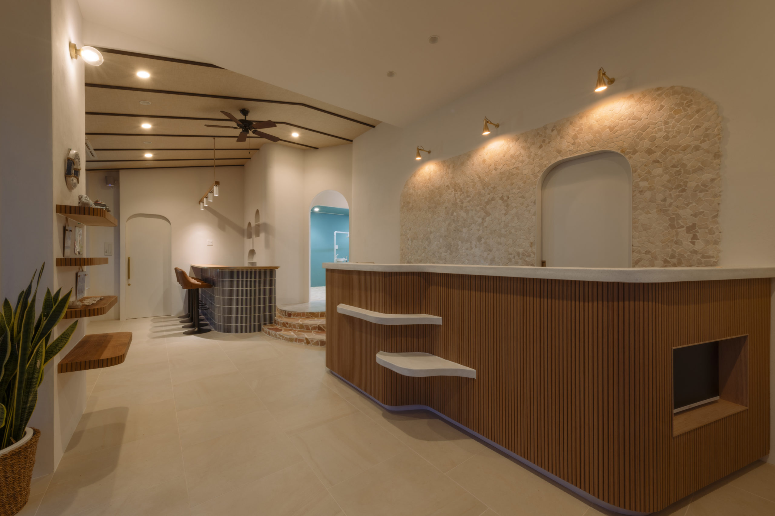 ハワイを思わせる色やモチーフ、やわらかな曲線と手仕事の残る素材感が、訪れる人の緊張をほどき、空間との距離を縮めていく。