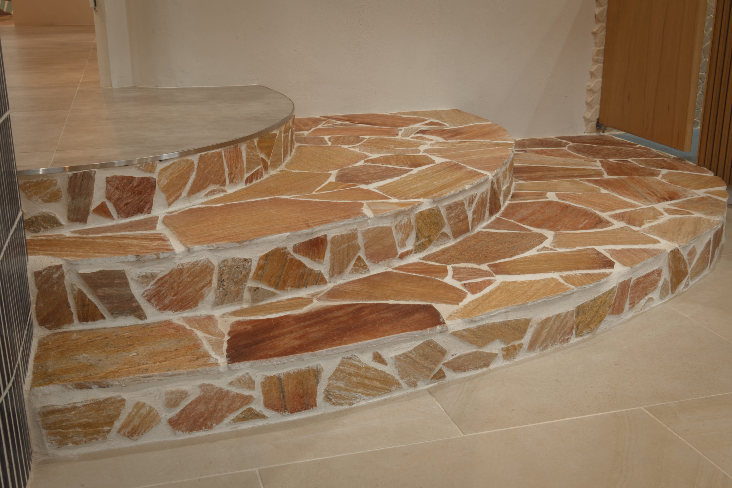 平面計画においても、単純な四角い空間ではなく、曲壁やアーチを積極的に取り入れ、入口ごとに色を切り替えることで、海外の建築に見られるやわらかく連続する空間構成をつくっている。