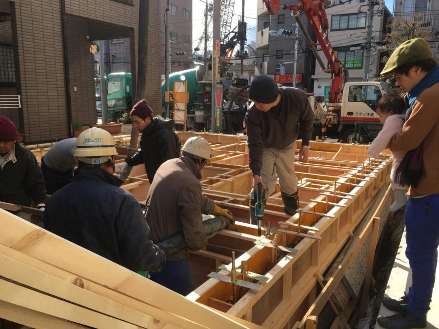 オーナーはフランスでの居住経験があり、<自分の手で家を作りながら住む>というヨーロッパの文化に強く影響を受けていた。都市住宅であっても、その姿勢を持ち込むことがこの計画のひとつの試みでもあった。また将来的には靴のセミオーダーや完全オーダーを受けられる“靴屋とカフェ”のような場をつくりたいという夢があり、分業しつつ最後は自分の手で仕上げるという考え方は、建築のプロセスにも通底している。