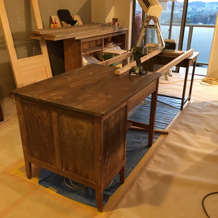 テーブルはよくある文豪机を再利用。