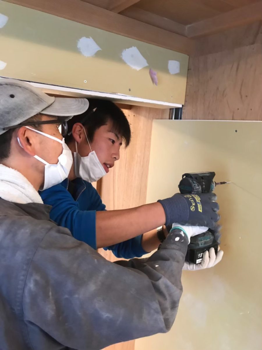 化粧材には昔の足場板を再利用。